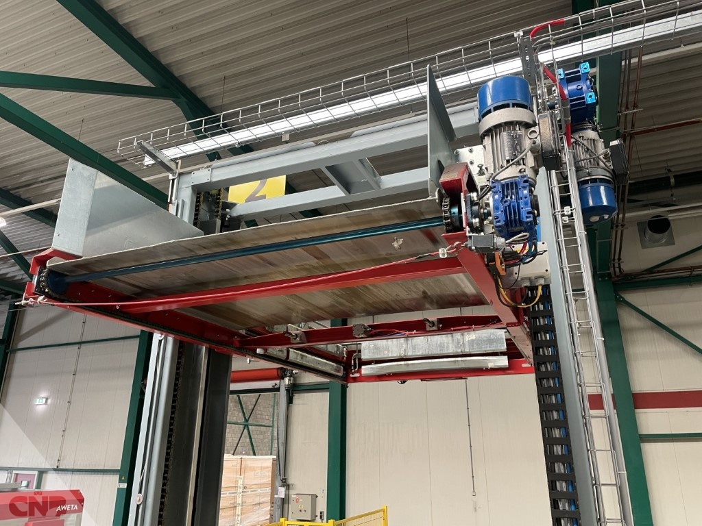 Machine is ook te gebruiken zonder pallet aan- en afvoersyteem. De kettingbanen worden dan niet geïnstalleerd. En de pallets worden met een heftruck in en uit de machine gehaald.