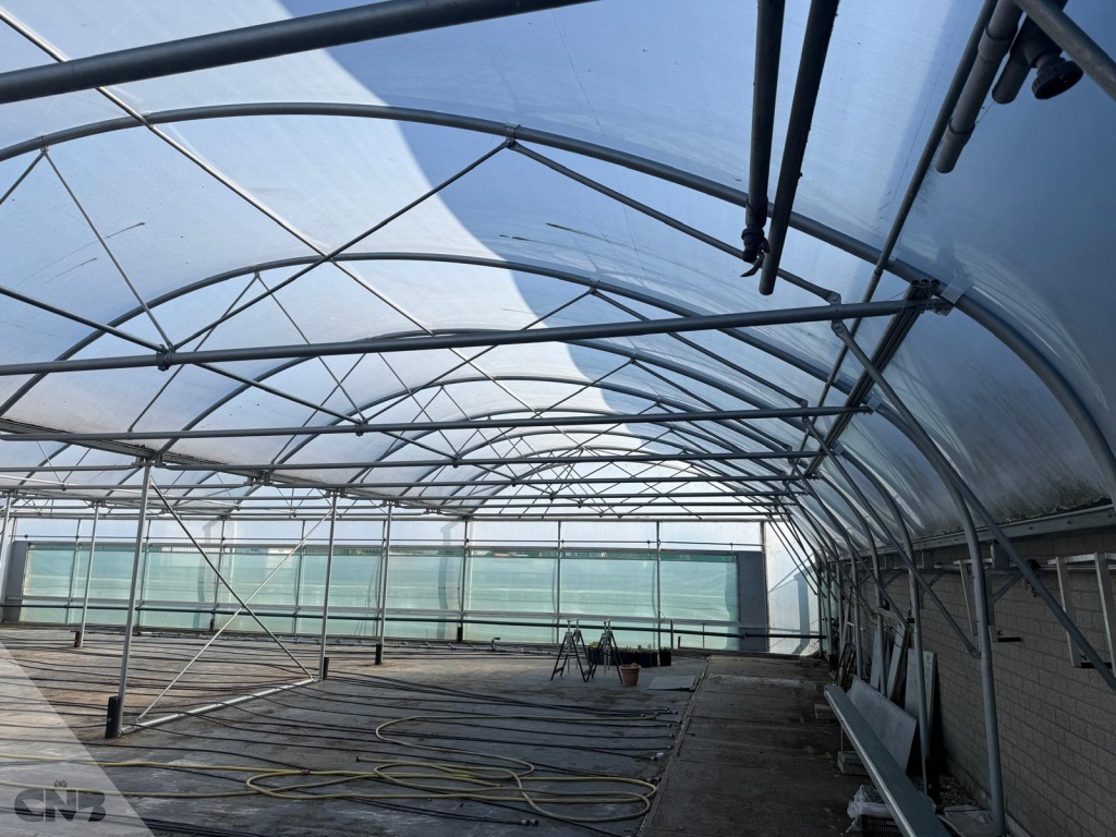 Breedte : 21,60 mtr. (2 kappen van 7,60 mtr en 1 kap van 6,40 mtr.)