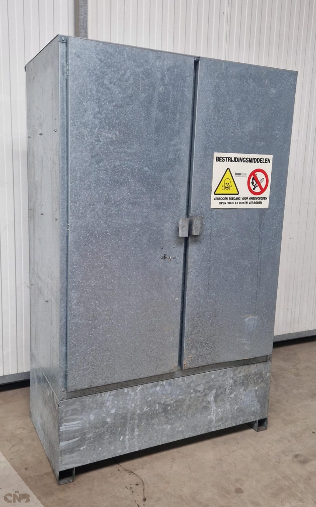 Ruime en nette gewasbeschermingmiddelenkastOpvangbak